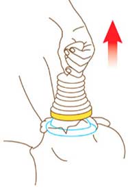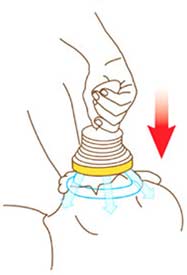 Il suffit de placer le masque sur la bouche et le nez de la victime. Appuyez pour créer l'aspiration. La durée de l'aspiration est minimale, ce qui rend le LifeVac sûr et efficace. Tirez ensuite vers le haut, et l'obstruction sera libérée de la gorge de la victime.